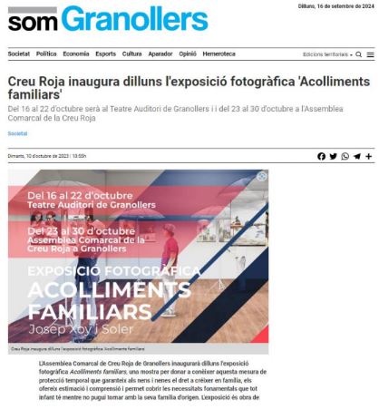 2023 - Som Granollers. Creu Roja inaugura dilluns l'exposició fotogràfica "Acolliments familiars"