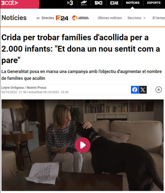 2023 - Entrevista realitzada per la secció de notícies de TV3. Crida per trobar famílies d'acollida per a 2.000 infants: "Et dona un nou sentit com a pare"