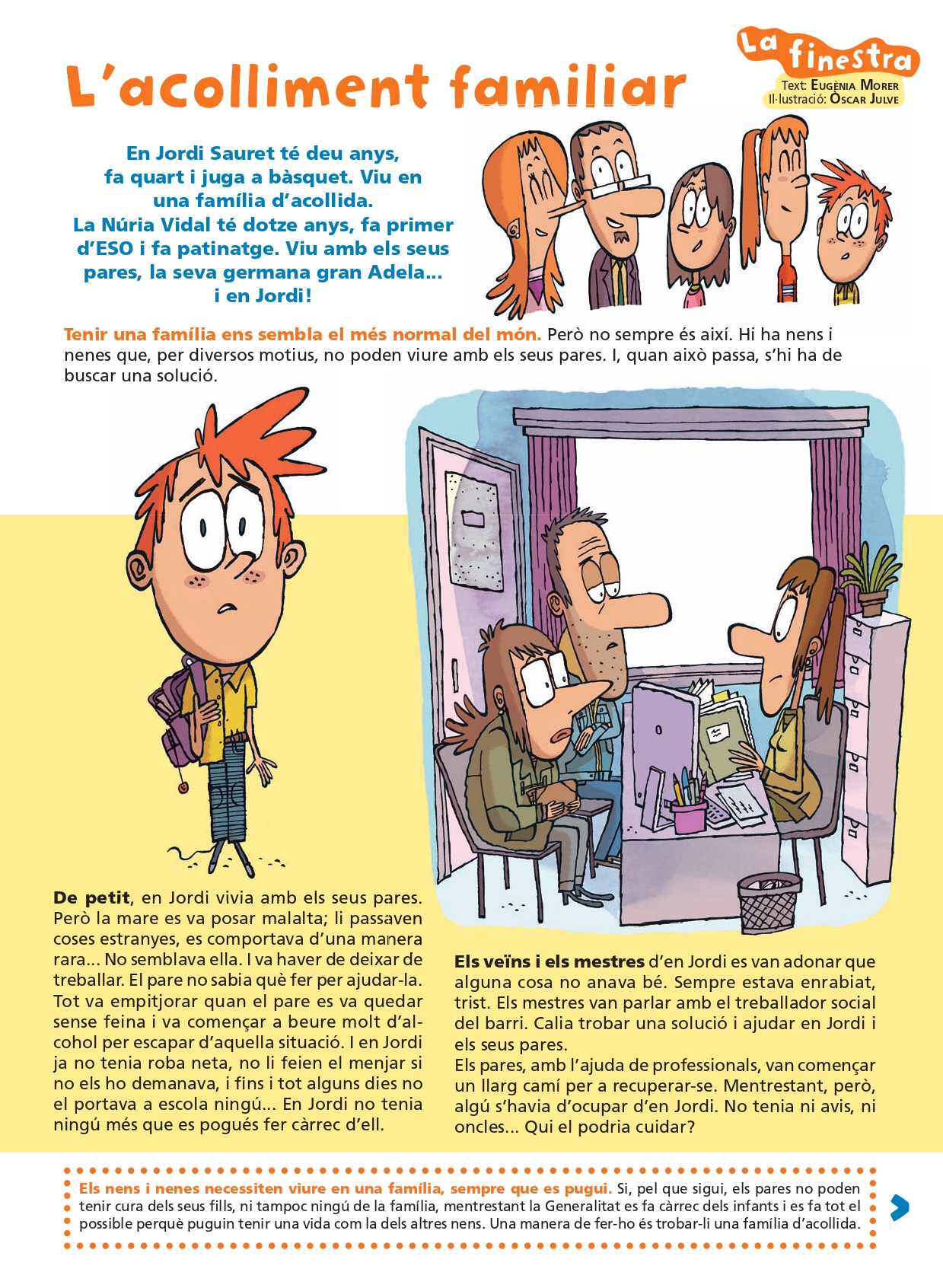 2013 - L'Acolliment explicat als infants. Article publicat al n. 1219 de Cavall Fort. Il·lustració: Òscar Julve