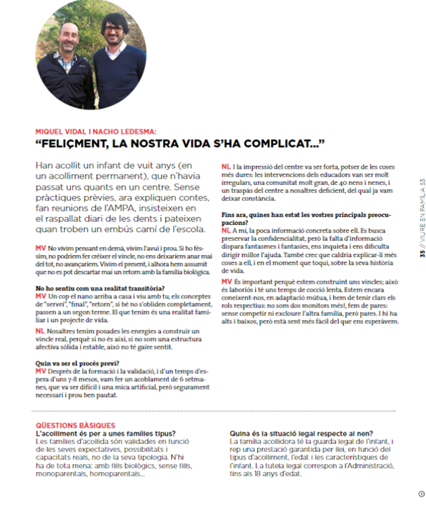 Article del Servei d'Acolliments Familiars sobre Què és l'Acolliment Familiar? per a la revista Viure en Família (Editorial Graó) edició núm. 85.