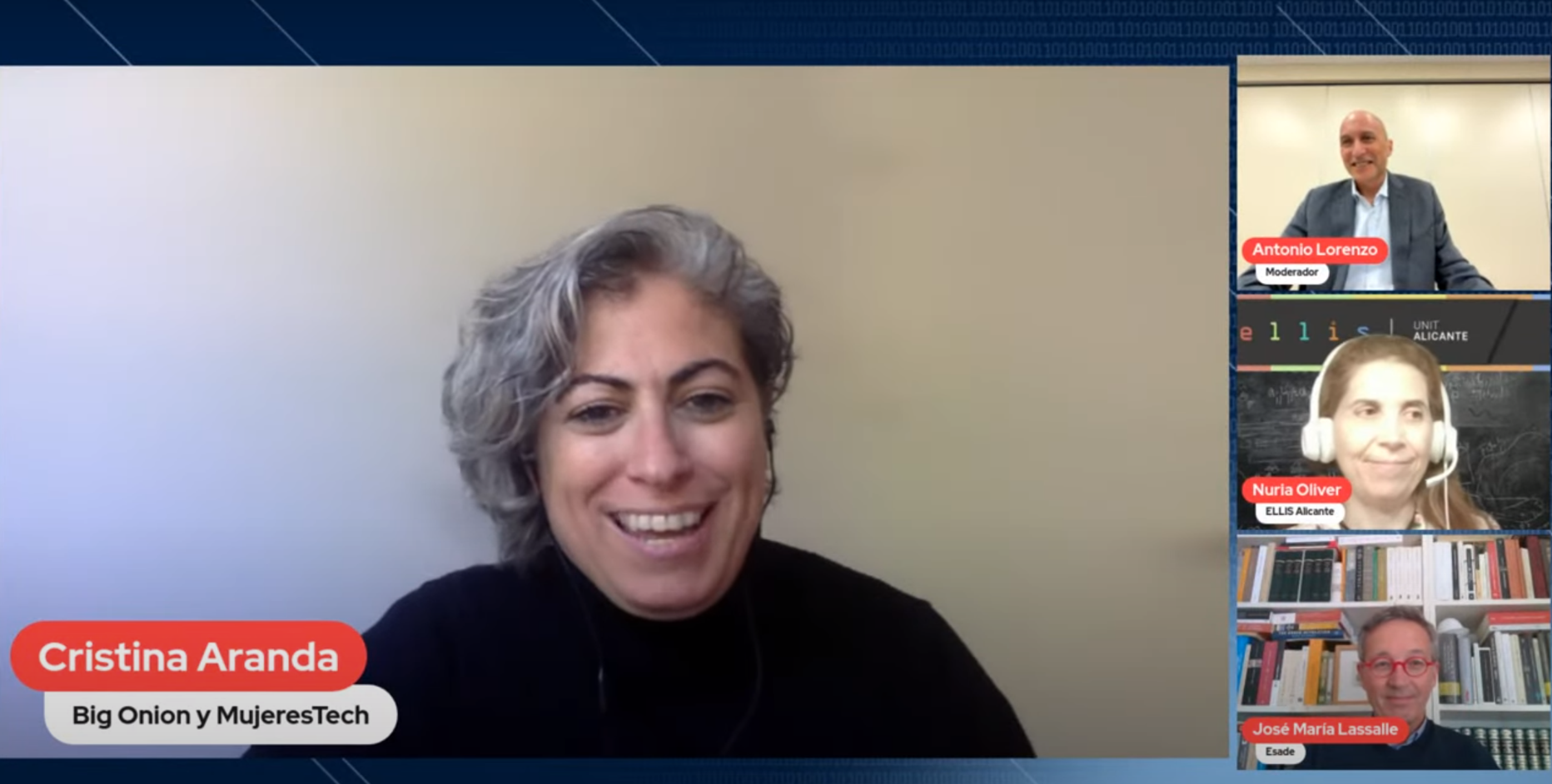 En esta misma línea, y para mitigar los efectos negativos que pueda tener la IA, Cristina Aranda plantea un control a través de una regulación mundial, al igual que existe en otros sectores como el del tráfico aéreo, así como una formación humanista de los profesionales que trabajan con datos. “Es el espíritu crítico lo que nos va a diferenciar de la IA, y la mejor solución para mitigar sesgos en los algoritmos es la formación, además de la aplicación de los sistemas de optimización de datos y ‘justicia algorítmica’, ya existentes”. Aranda ha destacado la importancia de incorporar la ética dentro del diseño de estas soluciones de IA “para hacerla más inclusiva y con un impacto más social”.