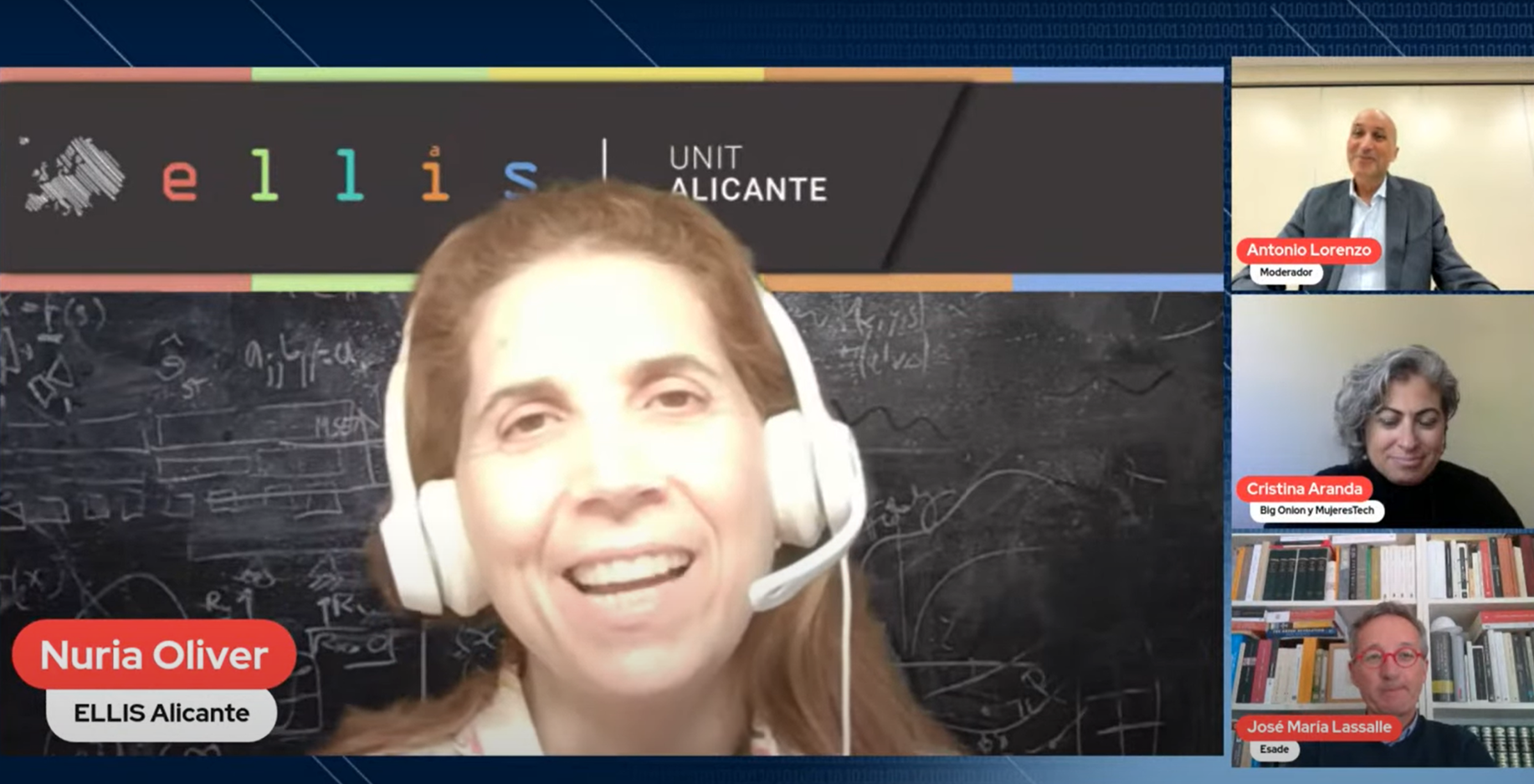 Como señala Nuria Oliver, los algoritmos nos pueden ayudar a tomar mejores decisiones y a entender mejor el estado del mundo, “aunque sabemos que esta tecnología no es perfecta”. La cofundadora de ELLIS Alicante ha señalado la importancia de trabajar en una IA centrada en las personas para hacer frente a retos como la crisis climática y energética o el envejecimiento de la población. La experta en IA no ha querido olvidar los desafíos sociales y éticos que presenta esta tecnología, señalando que “tenemos que abordar sus limitaciones, como la violación de la privacidad, la estereotipación, la falta de veracidad, los sesgos algorítmicos, etc… si queremos que este potencial se convierta en una realidad. Para superar estos retos, –ha asegurado–, tiene que haber mucha investigación, libre de intereses económicos”.