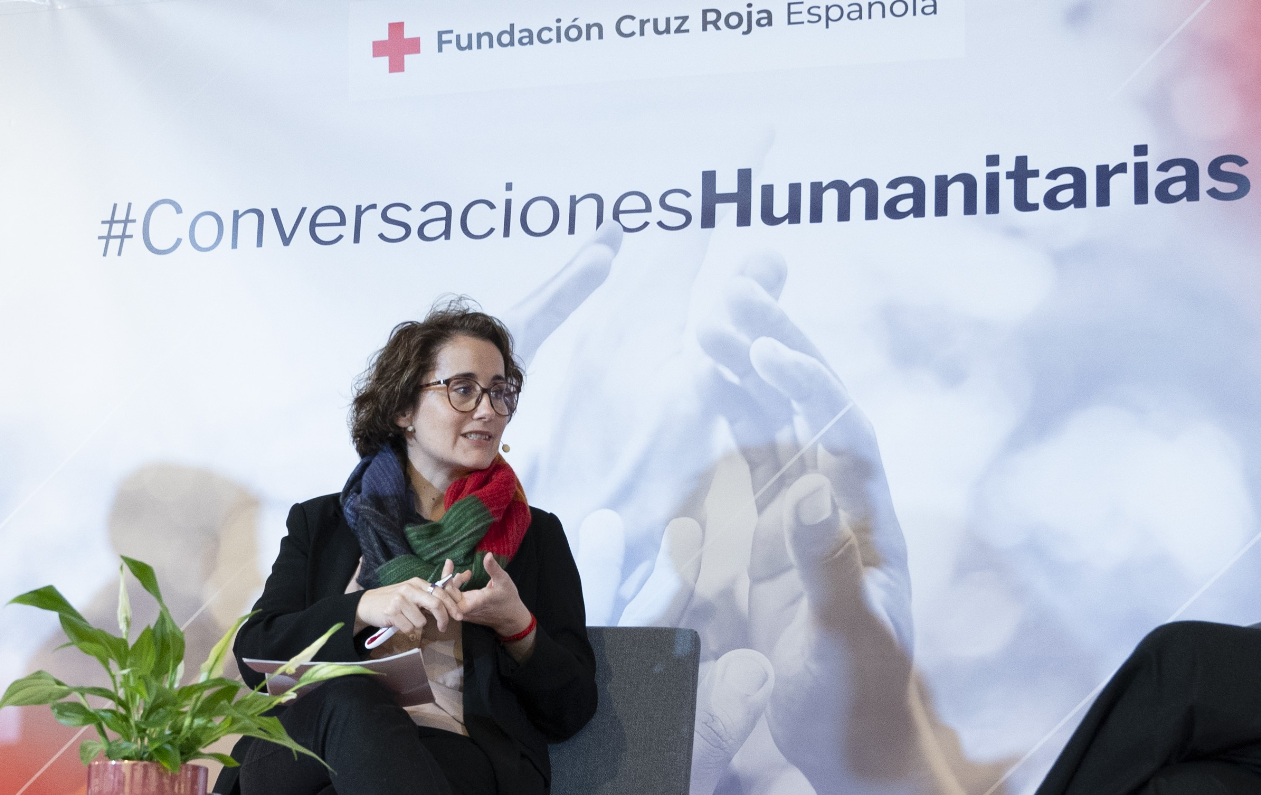 [Raquel Fernández Gibaja de la Federación Internacional de las Sociedades de la Cruz Roja y de la Media Luna Roja (IFRC) participó en el encuentro “Conversaciones Humanitarias: hacia un mundo sostenible” celebrado en Madrid el 21 de noviembre de 2023]