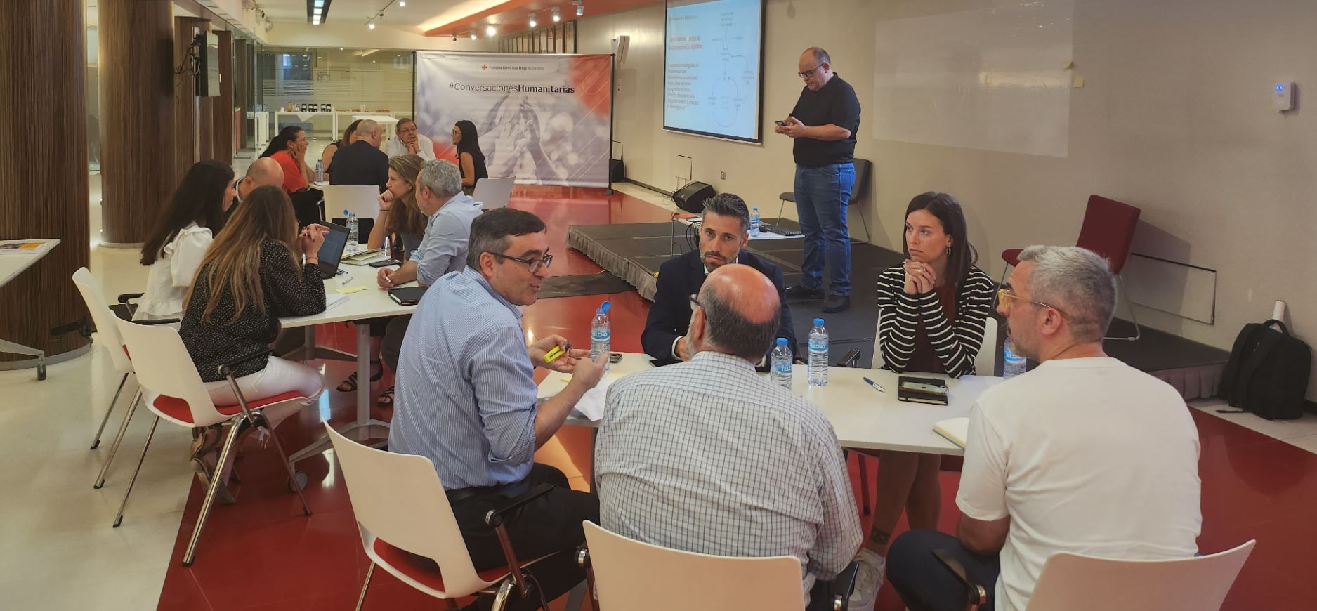 Organización de un ENCUENTRO DEBATE con 16 personas expertas, de distintos ámbitos de conocimiento, experiencia y responsabilidad, para analizar los hallazgos claves y co-crear estrategias y soluciones que faciliten dicho desarrollo. Este encuentro tuvo lugar en Madrid el 18 de junio de 2024 bajo el título “La revolución tecnológica empieza por las personas ¿cuáles son las claves para no dejar a nadie atrás?”, con el formato #ConversacionesHumanitarias generadoras de Futuro, y siguiendo la Regla de Chatham House.
