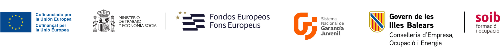 El programa SOIB Concertación Servicio de Orientación Profesional está promovido por el SOIB y cuenta con la financiación del Fondo Social Europeo Plus (FSE+).