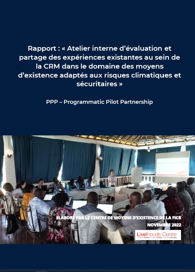 El taller interno "Evaluación y puesta en común de las experiencias existentes en la CRM en el ámbito de los medios de subsistencia resilientes frente a los riesgos climáticos y de seguridad" es una de las subactividades de este programa. Este informe sólo está disponible en francés.